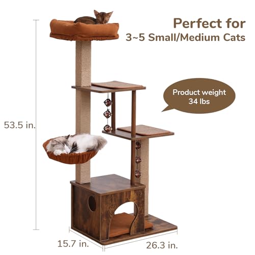 Unique design – The wooden cat tree has a minimalist design with a brown wood veneer, not only sturdy but also adds an elegant atmosphere to your space, perfect for matching with your home furniture.