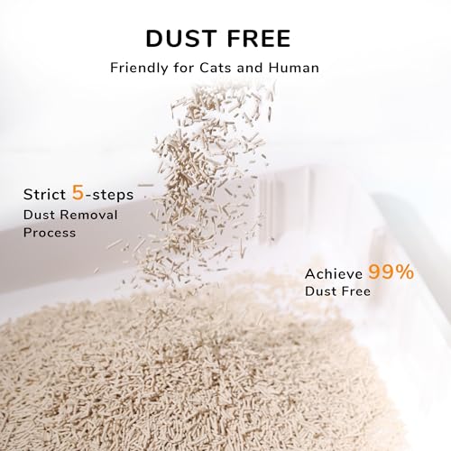 QUICK CLUMPING & FLUSHABLE: 2-seconds absorption & 3-seconds cat litter clumping. The tofu litter forms tightly, clumps quickly, scoop easily on account of its anti-stick feature. The cat tofu litter may also be flushed away in the bathroom, saving your time. (Reminder: Please do not flush too much litter once a time.)
