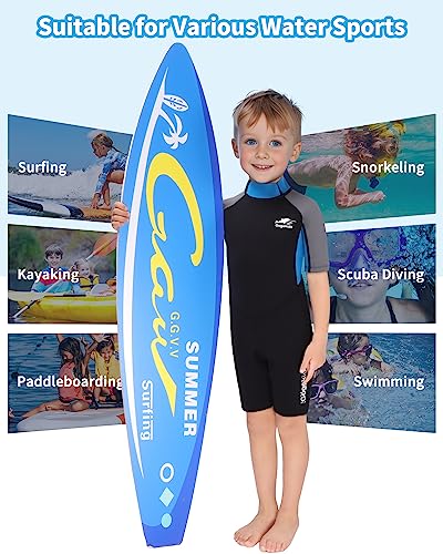 FLEXIBILITY & COMFORT – Our kids spring wetsuits made of high-quality neoprene offer a wonderful dressing experience and excellent elasticity, allowing children to move freely and easily in the water. The comfortable and stretchy fabric ensures a snug fit, enabling kids to enjoy water sports without restrictions.