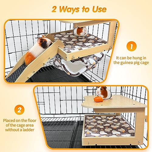 【High Quality Material】This guinea pig hideout is made of natural wood, which is safe and environmentally friendly, sturdy and durable, with excellent load-bearing capacity. At the same time, it can resist deformation and damage, creating a safe hiding place for your small pets, the hammock and double-sided mat are soft, washable and reusable.