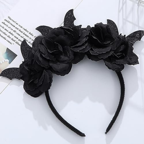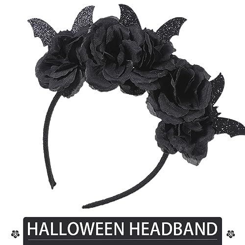 【Halloween Hair Hoop】5 flowers black rose flowers and a bat headband make your costume noticeable from afar.