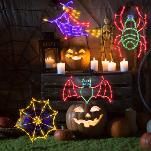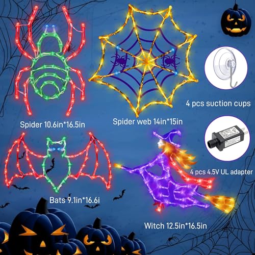 EASY INSTALLATION- These lights use the characteristic ink-jet effect, which is more beautiful and intoxicating throughout the day in addition to at night. These different themes of Spider Web & Bats & Witch & Spider.Pumpkin Festival window lights are ideal for decorating and illuminating the home to make your house more beautiful and lovely.