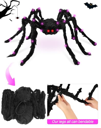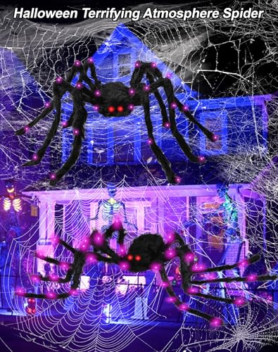 🕷【Unique Purple Light Up Halloween Decorations】:Black Furry Spider With Scary Red Eyes Make Your House Transform The Focal Point Of This Street,Get The Attention Of Children, Adults At Night.