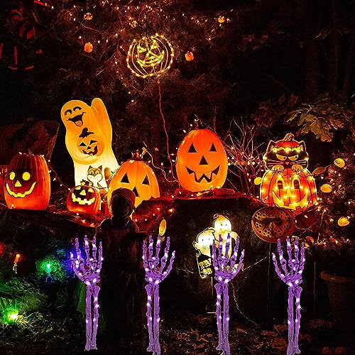 Halloween Decorations:4 pack lighted skeleton hand stakes decorate your garden, yard path,house in the coming up Halloween which size are 18.3 X 4 inches. Feel Halloween thrillers & horrors, everyone arrives in your place.