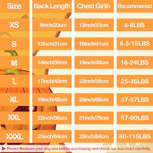 Dog Shirt Size:There are 7 different size from XS S M L to XL XXL XXXL for choice. Please measure the chest girth and back length of your pet, and refer to the size chart before ordering, and note that your pet frequently wearing a small size does not mean that each one small sizes are suitable for her or him; If the size of the pet is close to the upper limit of the size chart, please make a selection a larger size.