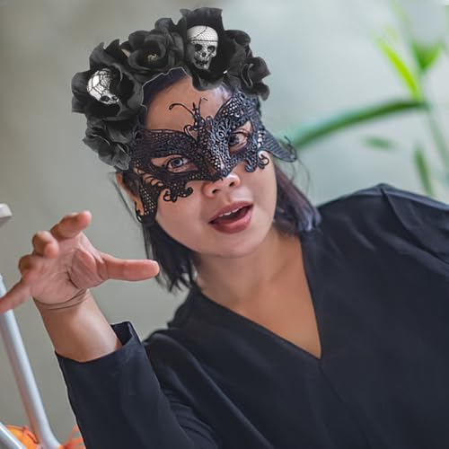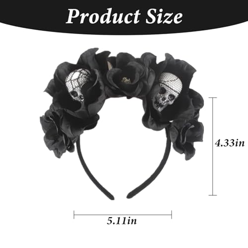 Halloween Headbands for Women – 1Pcs Black Rose Veil Skull Hair Band Black Flower Crown Day of The Dead Headpiece Gothic Halloween Costume Hair Accessories for Women and Girls Gifts