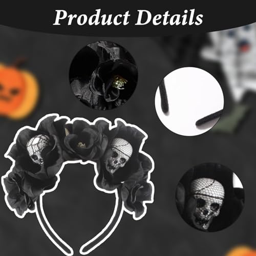 【Thin Halloween Headbands for Women Package】- Including 1pcs x Halloween headband black rose veil skull hair band for women and head bands,these headbands cater to diverse preferences, making them a should-have in each and every woman’s hair accessory collection.