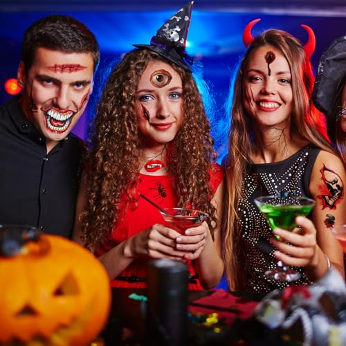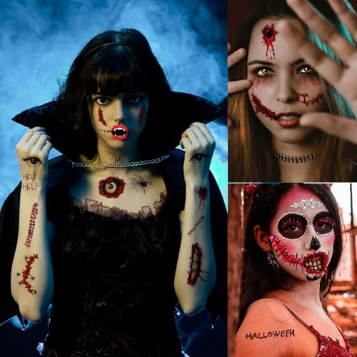 Halloween Party Supplies — The Bloody and Gory tattoos look real and will be the most beautiful and shimmering part on your body custom temporary tatttoos for men and women. Suitable for Halloween costumes, nightclubs, birthdays, clip art, festivals, hidden scars, zombie and vampire makeup, Day of the Dead, masquerades and any other occasion.