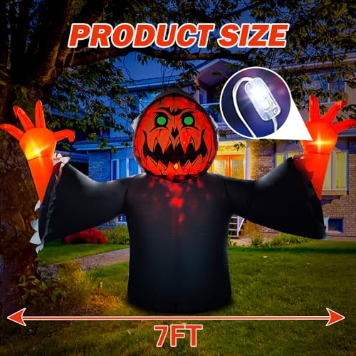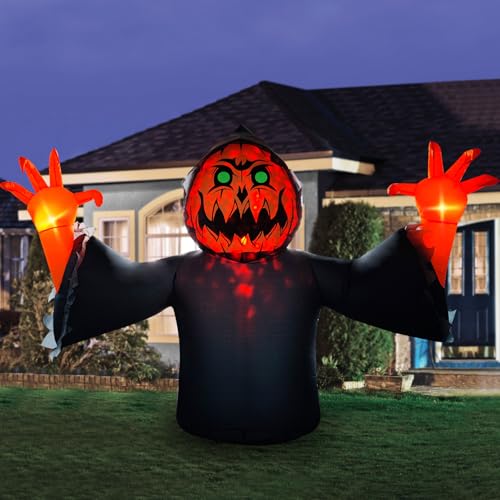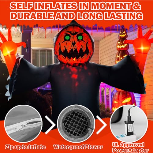Sturdy & Weather-Resistant:Crafted of high-quality waterproof polyester, our Ghost Pumpkin blow up decoration is sturdy and durable for use. Rain or shine, scary inflatable Halloween decorations are sturdy enough to last during the holiday season.