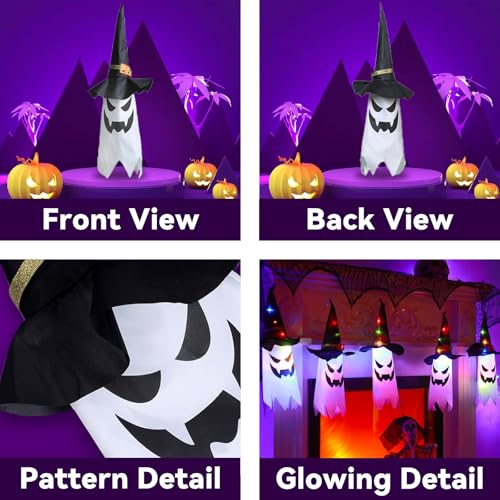 Witchy Floating Hats: Step up your Halloween ghost decor with our spellbinding floating ghost wizard hats illuminated by vibrant LED string lights. Perfect for adding a mysterious touch to your outdoor or indoor spaces.