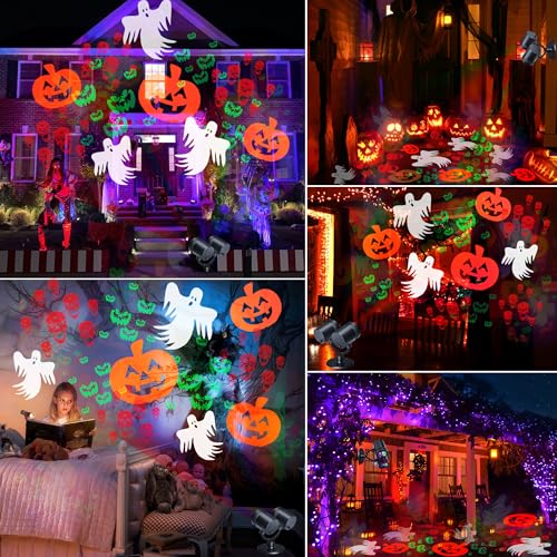 Halloween Projector Lights: The Halloween projector with Red Skull,White Ghost,Orange Pumpkin,Green Demon pattern design, creating a eerie and creepy, colorful space projection atmosphere for your house, room, party, to show you a funny Halloween lighting sky. Great Halloween decorations Projector choice for you and your family.