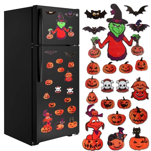 Car halloween decorations package – 21Pieces halloween car magnets includes: You are going to receive 2 grinch dog car magnets,13 orange pumpkin magnets reflective fridge magnets, 2 skull magnet, 4 bat magnets halloween decorations,sufficient amounts to meet your day-to-day usages or festival decoration needs.