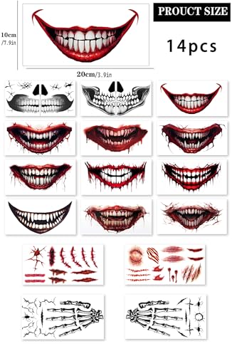 Perfect for All Halloween Themes: Whether you’re going for a zombie makeup look, a creepy clown tattoo, our Halloween temporary mouth tattoos for adults have you covered. These scary face tattoos are ideal for any costume, Halloween face stickers.