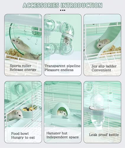 🐹【Pet Amusement Park】We have a lot of daily necessities and toys for hamsters, so that pets can spend every day happily. xixi home hamster cages are prefabricated for easy movement, storage and transportation. The upper and lower floors are connected by pipes, and pets have fun every day. Suitable for small animals such as Syrian hamsters and chinchillas.