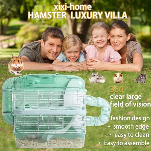 🐹【Pet Amusement Park】We have a large number of daily necessities and toys for hamsters, so that pets can spend on a daily basis happily. xixi home hamster cages are prefabricated for easy movement, storage and transportation. The upper and lower floors are connected by pipes, and pets have fun on a daily basis. Suitable for small animals such as Syrian hamsters and chinchillas.