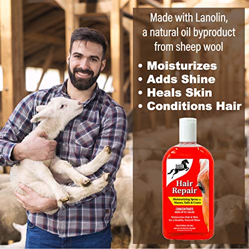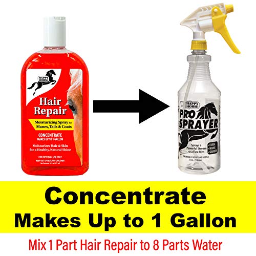 Concentrate – Concentrated formula will make up to 1 ready-to-use gallon of moisturizing spray. To dilute, mix 1 part Hair Repair to 8 parts water in a misting spray bottle.