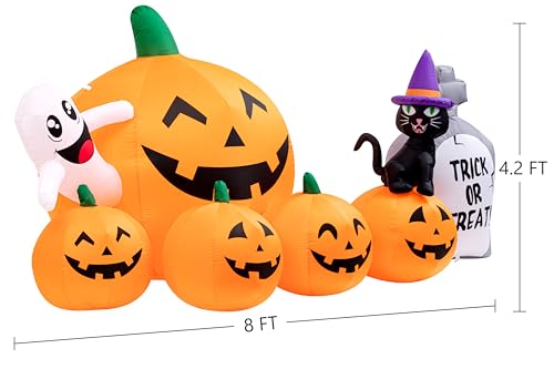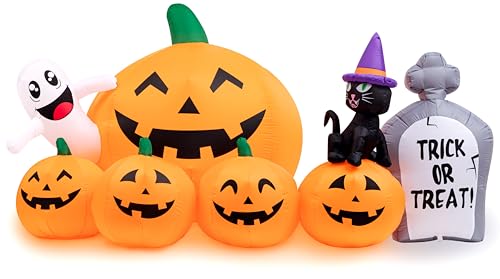 CUTE PUMPKIN: HBife blow-up pumpkin with 5 cute animated pumpkins, 1 witch’s cat, 1 ghost, and 1 tombstone, can be a superb present for your children. We need to provide you with a happy and bright Halloween Day.