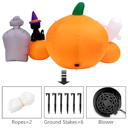 CUTE PUMPKIN: HBife blow-up pumpkin with 5 cute animated pumpkins, 1 witch’s cat, 1 ghost, and 1 tombstone, will be a great gift for your children. We want to give you a happy and bright Halloween Day.
