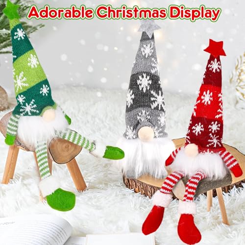 Adorable Christmas Display: Comes with 6pcs improbable Santa gnomes, made of soft felt, fiber white beard and plush nose, durable and secure. Christmas gnomes are dressed in red, green or gray conical knitted hat with snowflake patterns, so lovely and stylish. High hat is equipped with a bendable wire, provide you with more flexibility to create cute and interesting poses. What a big hit for Christmas decor!