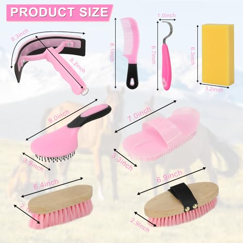 GINDOOR Horse Grooming Kits, 9 Pieces Pink,