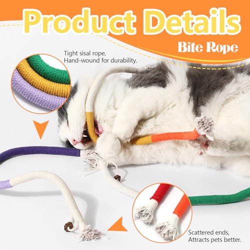 【Interactive and Quiet】Cats can have fun playing and exercising without you waving or throwing. Our cloth rope for cat play also doesn’t make sound, you don’t have to worry about being woken up at night by sound of your cat playing.