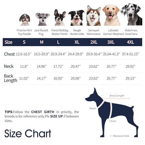 XXXL Dog Coat:Size XXX-LARGE, fits 35.04″-41.3” chest,26.77″ back, 26.77”neck;Dog winter jacket for large dogs like German Shepherd,Husky,Labrador,Golden Retriever and so on.Pls measure your dog’s size carefully before ordering