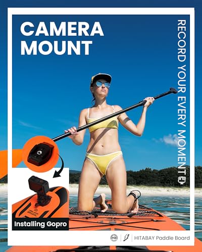 🧡SAFETY HANDLE & CAMERA MOUNT | There are two safety handles on the front of the HITABAY paddle board. When people sit in front of the inflatable sup, they are able to hold the handles to verify safety. You’ll install the action camera on the camera mount and record your wonderful moments at any time.