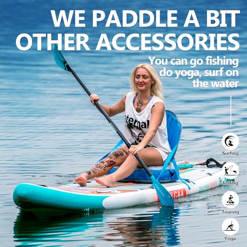 【ENHANCED TRACTION AND COMFORT】: The COOLCAA inflatable fishing paddle board is made from a non-slip 5mm EVA deck, which is 2mm thicker than the 3mm decks in the marketplace for maximum durability, slip resistance and comfort. This inflatable pulp board can be used in numerous water conditions such as and is versatile enough for yoga, surfing, exploring, traveling and fishing.