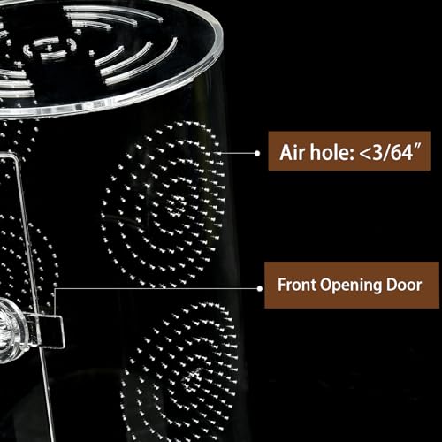Product size is 11 1/2”*6”*6”, the diameter of the air hole is 3/64″, suitable for jumping spiders, small arboreal reptiles,bearded dragon, amphibians and invertebrates. Provide a safe and comfortable home for your beloved pet.