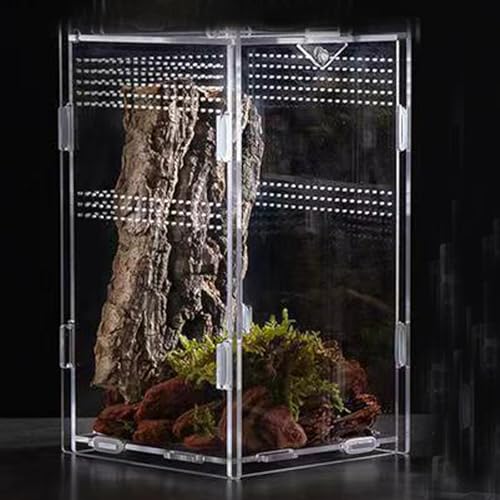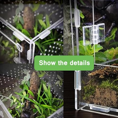 FROG TERRARIUM PREMIUM MATERIAL: tortoise enclosure the clear bearded dragon cage is made of Clear Acrylic material, critter keeper is safe and sturdy, kritter keeper and not easy to break even if cricket cage is bitten or scratched by reptile pets; hermit crab kit bug cage reptiles can use cricket keeper for reptiles safely for a long time.