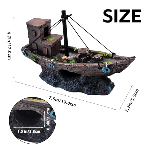 Product Size: Small shipwreck decoration measures:7.5 x 2.2 x 4.7in/19.0 x 5.5 x 12.0cm.Tip: After receiving this beautiful resin sunken shipwreck, it’s endorsed to soak it in water for a day and ventilate it to dry it out, then use it again will probably be more assured oh.