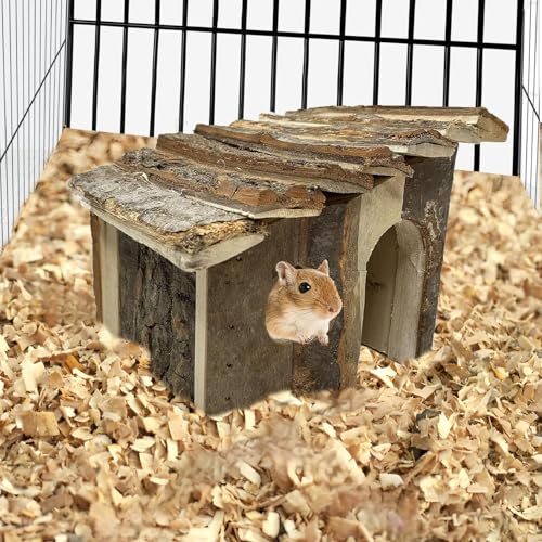 Protected Material : The hamster house is made of high quality wood, and its natural appearance provides pets with a natural sense of security. Suitable for Dwarf Hamster, Mouse, Rat,Gerbil and Other Small Animals