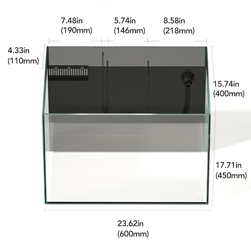 【High-Quality Manufactured】The tank is made of all glass low iron ultra-clear glass with a beveled edge, and the glass has an excellent light transmittance. Including the chamber dividers, they are all made by glass. Each side of the glass is cut and ground by accurate size. The glass joints are made by a high-quality German silica gel process, presenting a smooth and rimless look.