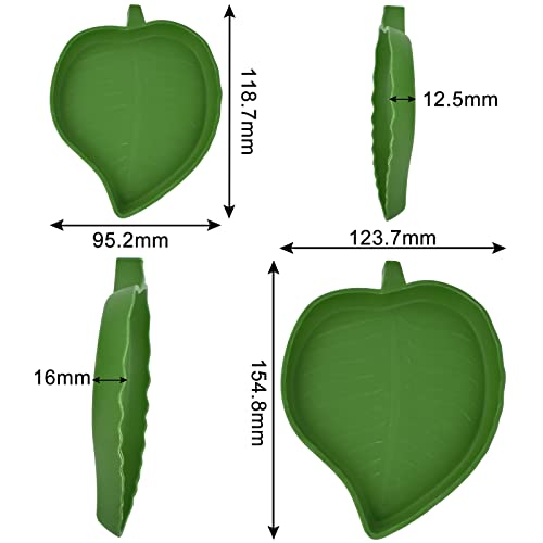 Small & Large Combination: 2 sizes of the leaf reptile food water bowls, the smaller measures 4.72 x 3.74 x 0.47 inch/ 12 x 9.5 x 1.2 cm, and the larger is 6.06 x 4.88 x 0.59 inch/ 15.4 x 12.4 x 1.5 cm.