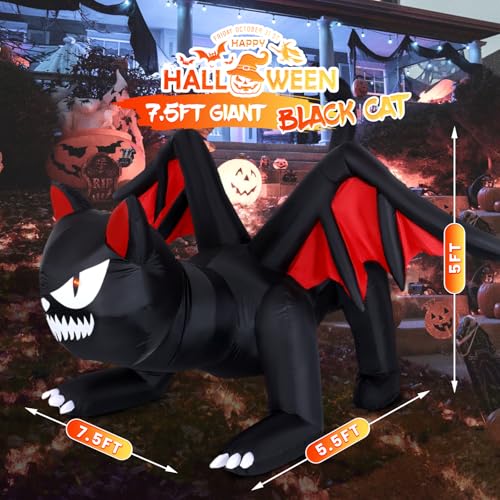 7.5FT Halloween Inflatable Shakeable Black Cat Decoration: This inflatable decoration is the perfect outdoor decoration for Halloween. It is a giant black cat with huge devil wings, and its eyes will light up red at night, creating a festive atmosphere, and will greet your guests and trick-or-treaters with a spooky and fun atmosphere.