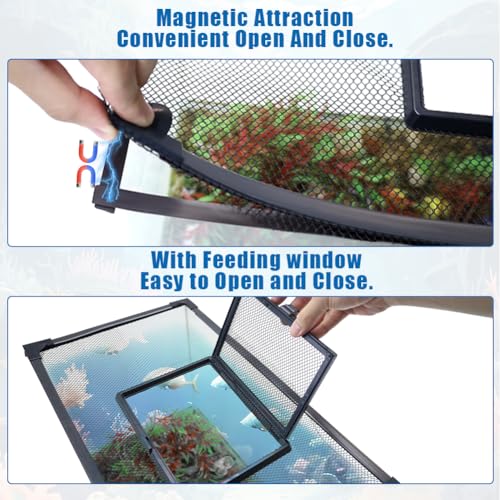 Magnetic Fish Tank Lid with Feeding Window, SEILETOO High Transparency Fish Tank Cover, Aquarium Lid Will also be Cut to Any Size, Fish Anti Jumping Net