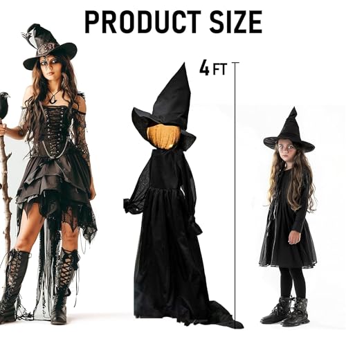 Spooky Design: This set includes three 4 FT tall witches holding hands, cloaking in black cloth and adorning with a black hat. Their glowing faces create a haunting and eye-catching display for your Halloween.