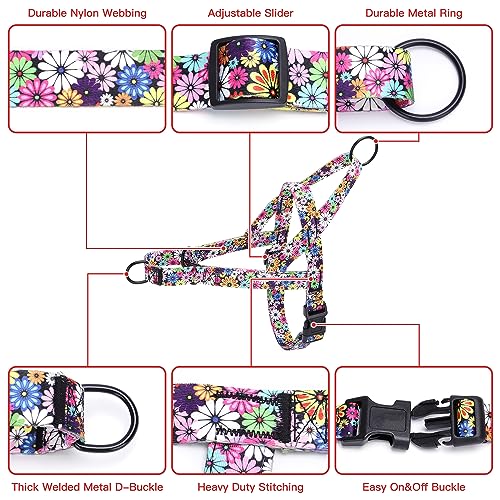 Stylish and Secure: Featuring a beautiful floral pattern, our harness not only looks great but also provides the utmost safety for your dog. Made from durable nylon, it is built to withstand daily wear and tear.