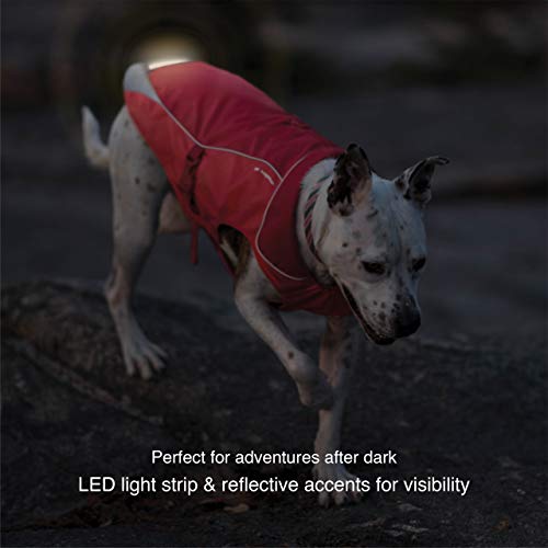 Rain filtering through the trees, wind whipping over the mountains, snow falling wet and heavynone of these have to stop your adventure. The Kurgo North Country Dog Coat is made from a durable rip-stop material that stands up tough on the trail and effortlessly sheds water, wind, and snow. This warm dog jacket is lined with a soft fleece to keep your furry friend warm and comfortable through any conditions. The outdoor dog coat is waterproof and machine washable. Made for three season coverage at the same time as taking into consideration natural movement, this dog winter jacket fits dogs of all sizes. Theres a zippered opening for lead access to collar or harness and back darts for a tapered fit. A flashing LED strip with reflective piping offers you 360-degree visibility of your dog. So let the weather do its worst, because youll be sporting the most productive!