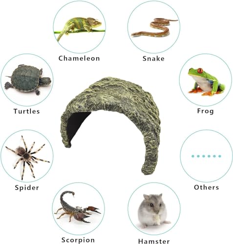 Realistic Rock Landscape: The hideout’s realistic rock appearance adds a natural feel to your terrarium, providing comfort and security for your reptiles. It is an attractive addition to any reptile habitat.