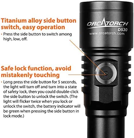 Protected Lock Function: The side button switch is made of titanium alloy which is good for corrosion resistance. Hold at the side switch for 5 seconds, the light will turn off and turn out to be a state of Protected lock. The side switch will be unnecessary unless unlocking it by a double press, which avoids mistakenly touching.