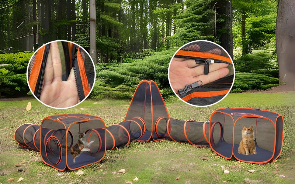 【Quite a lot of combinations Cat Play House, suitable for both indoor and outdoor use】Do you think this small animal playpen is only a fixed combination? Of course not, 3 cat tents, 3 cat tunnels, with 6 zipper doors, can be used together or one at a time. Different assembly methods, You’ll be able to DIY and combine freely to create your own cat playground by purchasing multiple sets. Come and create your own cat cage and give your baby a surprise.If you have any questions welcome to contact us, we will be able to reply you within 24 hours.