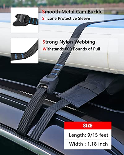 EASY TO USE — The straps with a suitable length (9/12/15 feet), please select the suitable length in keeping with your needs, it may be adjusted and meet quite a few strapping needs. If it is too long, just tie the surplus cord into a knot so it doesn’t bang against your car