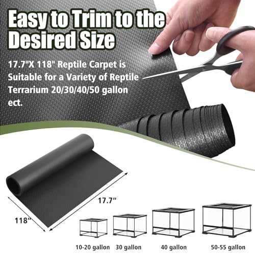 The bearded dragon substrate is made of soppy ,thick and non-slip subject matter, providing a comfortable surface for bearded dragon. Easy to trim to the specified size and put in tank, It is suitable for plenty of common reptile tanks and enclosures. 17.7 inches in width and 118 inches in length