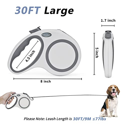 Retractable Dog Leash nylon Cord extends up to 30 ft, For any types of dog with up to 77 lbs in weight, strong and durable, No noise design made for daily use, giving them maximum freedom while under your control.