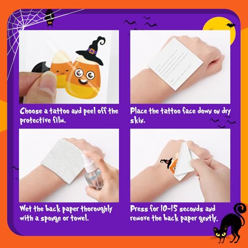 Real Fun Halloween tattoos for Kids:You will get 144 PCS Halloween temporary tattoos with instructions on the back sheet.These tattoo stickers are real fun Halloween decorations for toddlers and kids to enjoy endless fun for the whole Halloween season
