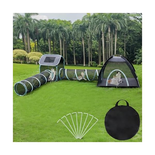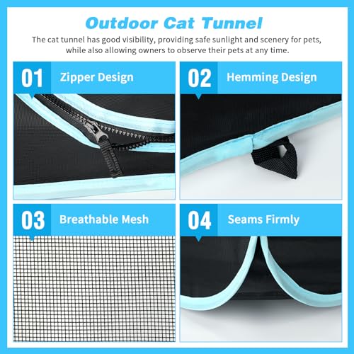 🐱Breathable Mesh Material – This catio tent is made of polyester mesh, which is durable and easy to clean. The mesh design allows pets to care for good breathability when playing inside. With good visibility, the cat tunnel provides protected sunlight and scenery for pets, at the same time as also allowing owners to observe their pets at any time.
