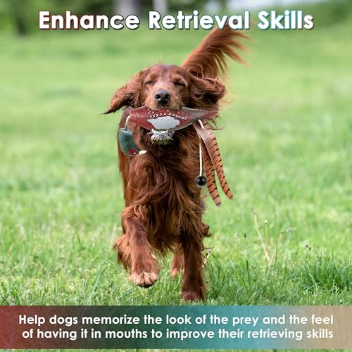 【Realistic Pheasant Design】Our hunting dog training tools feature a lifelike pheasant design, complete with a dangling head that simulates the motion of a real bird falling; This realism helps your dog acclimate to the sensation of carrying game, enhancing their natural hunting instincts; The detailed texture promotes better scent recognition, tracking, and retrieval skills, making your training sessions more effective and authentic