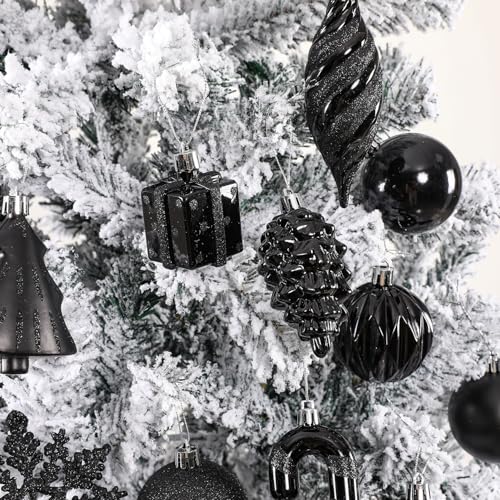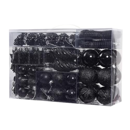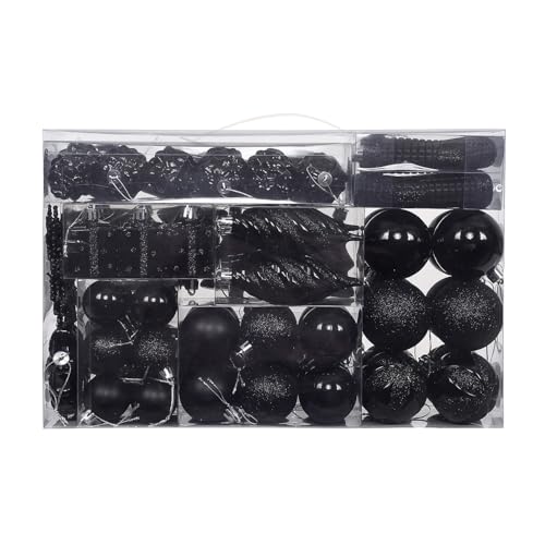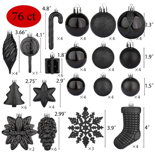 Festive Decor: This set includes 76 shatterproof Christmas ball ornaments in a classic black color, perfect for decorating your tree or home during the holiday season.