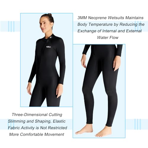 ★WARM COMFORTABLE FIT: Skyone womens mens wetsuit full body premium neoprene to provide you with a flexible and comfortable fit, provides you an excellent thermal insulating performance, this wetsuits for women men is naturally form fitting to reduce drag in the water, give you a better diving and surfing experience
